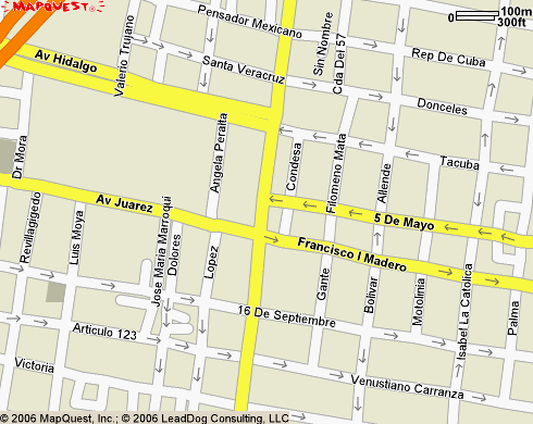 While waiting for the stores to open, why not visit El Moro "Churreria", a 24 hour rendezvous for hot chocolate and churros. Churros are basically an "extruded" doughnut- dough, deep fried, covered in sugar; just what you would expect. It's on the east side of Lazaro Cardenas, between Carranza and Ayuntamiento. You really have to walk around the area, because even this skillfully reproduced map isn't too accurate. A couple of excellent cafes are on the corner of Ayuntamiento and Lopez. Generally, the best coffee in Mexico is exported. Thankfully here is an exception to the rule!